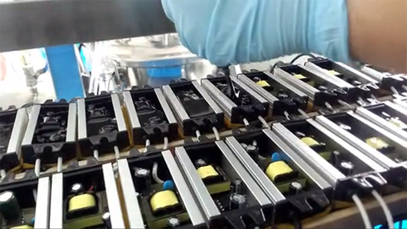 電子灌封膠有雙組份,也有單組份,本案例客戶深圳電子科技有限公司使用我司雙組份電子灌封膠進(jìn)行電源灌模密封。采用機(jī)器進(jìn)行真空環(huán)境下操作配比,將配比后的電子灌封膠經(jīng)過(guò)管道輸出就可以用于電源灌封使用。下面是客戶生產(chǎn)視頻拍攝由于手機(jī)拍攝像素問(wèn)題導(dǎo)致不清晰,請(qǐng)諒解。